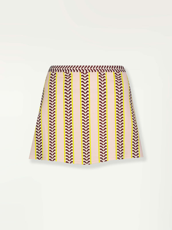 The Kesiti Pink Collection showcases delicate pink stripes with a bold chevron patterned ribbon, along with muted hues of pink, burgundy, and a bright citrus-orange hue.