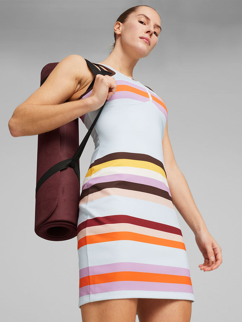 This cover-up dress features ribbed, soft, and functional fabric in soft icy blue with vibrant color stripe accents. It is made with dryCELL technology to keep you dry and focused during your workout. The zip closure on the front, round neck, and armholes provide full freedom of movement for your arms and shoulders.