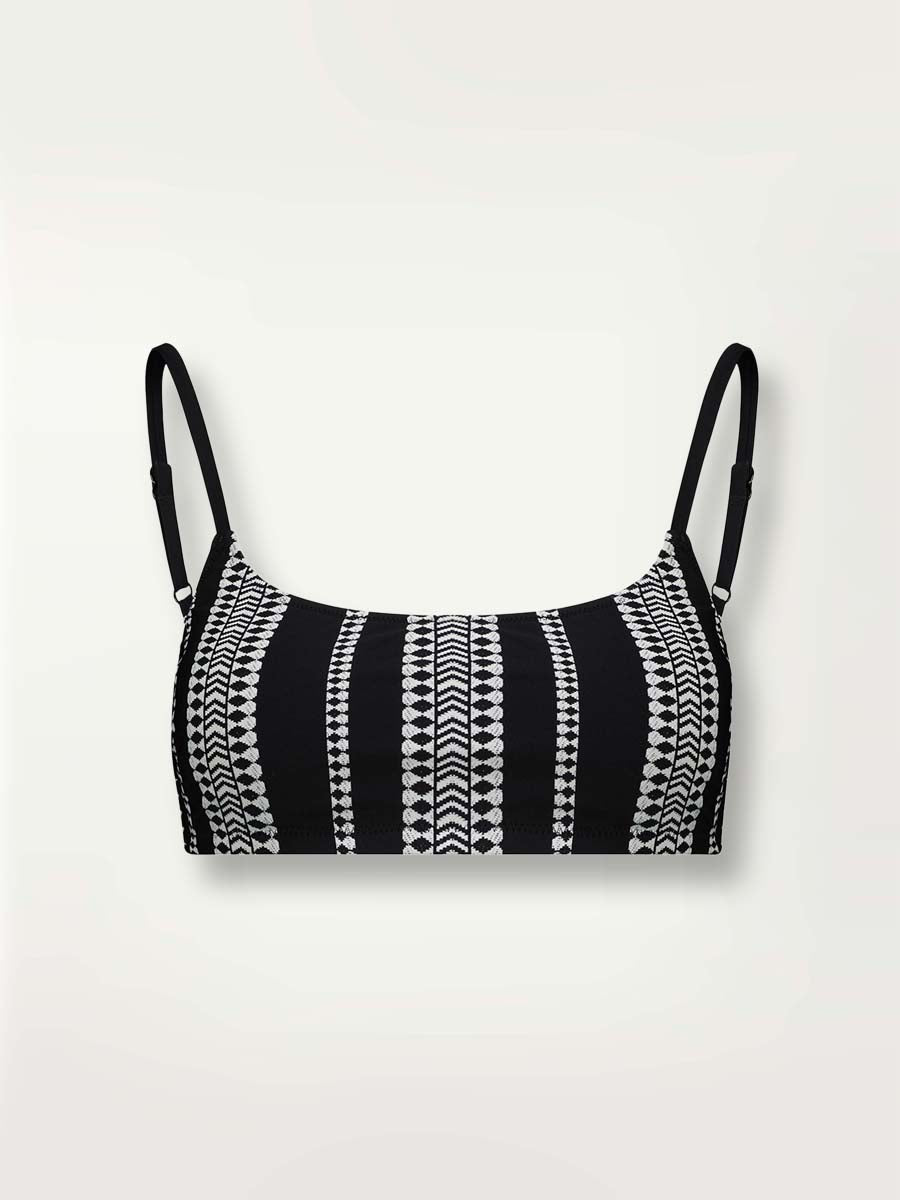 A timeless rendition of the iconic Luchia collection in black features the signature Tibeb pattern in white creating a classic swimwear line.
