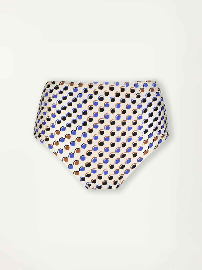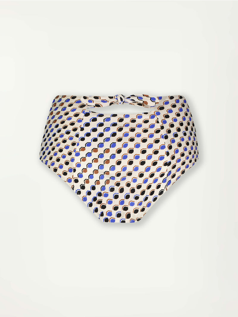 The fully lined high waist bikini bottom offers a flattering and moderate coverage with its low-cut leg opening. The bow tie in the back adds a touch a elegance to the silhouette.