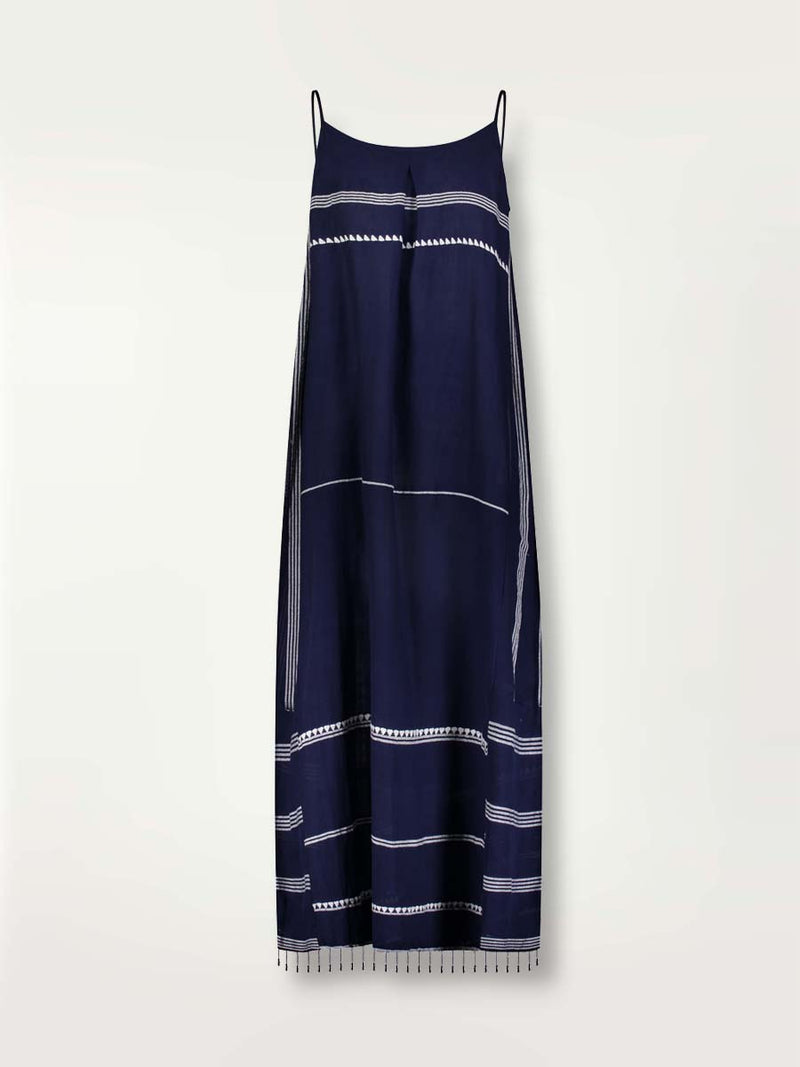 Featuring delicate white Tibeb bands on a rich navy silhouette, the Nunu line is a chic and modern collection.