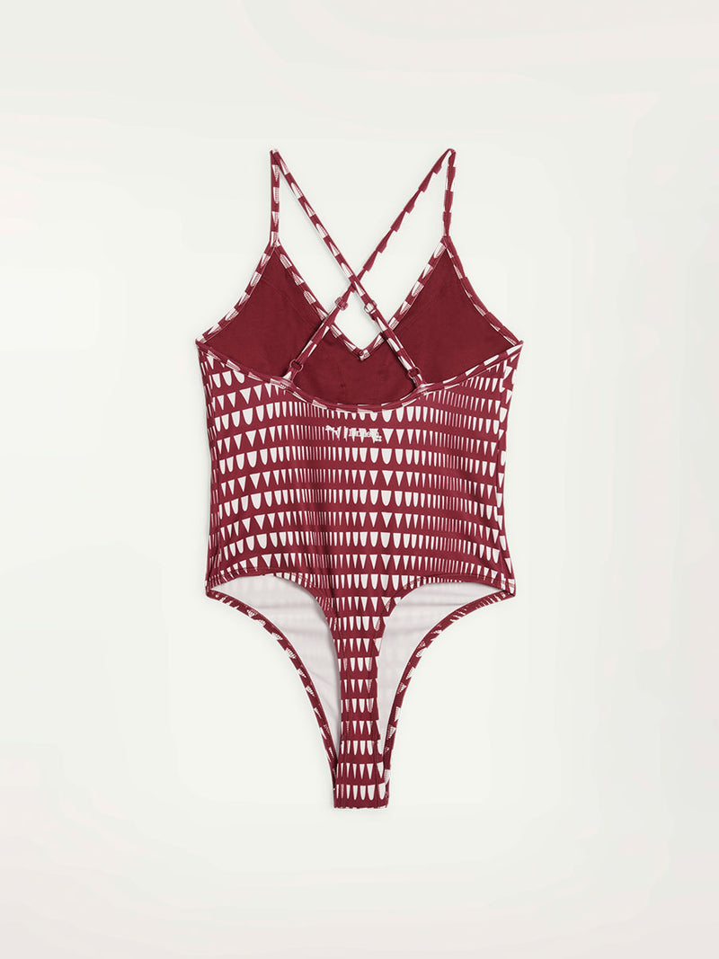This leotard features lemlem's signature hand-drawn triangle patterns on a soft ribbed fabric made with innovative Puma materials, including moisture-wicking dryCELL and luxuriously soft CLOUDSPUN technologies. The cross-back adjustable stripes, along with the soft fabric that contours your body, provide a comfortable and luxurious feel.
