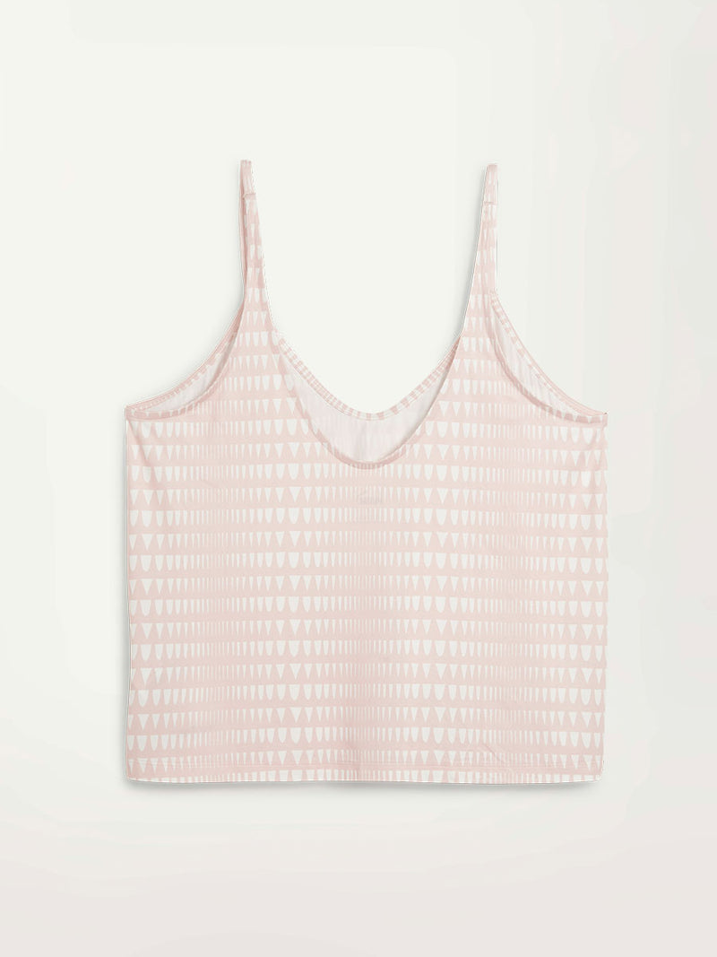 This flowy tank features a soft ribbed fabric with lemlem's signature hand-drawn triangle patterns in rose quartz color. It is made with highly functional dryCELL fabric to keep you dry during workouts, and has a flowy, relaxed silhouette for freedom of movement.