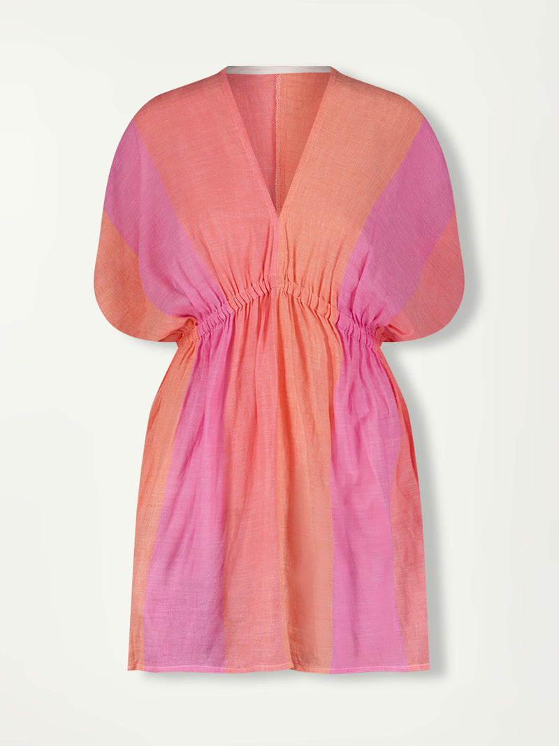The Nefas Peach Collection showcases a light, gauzy fabric with a beautiful ombre color block of pink, blush, and peach, creating a soft and airy look.