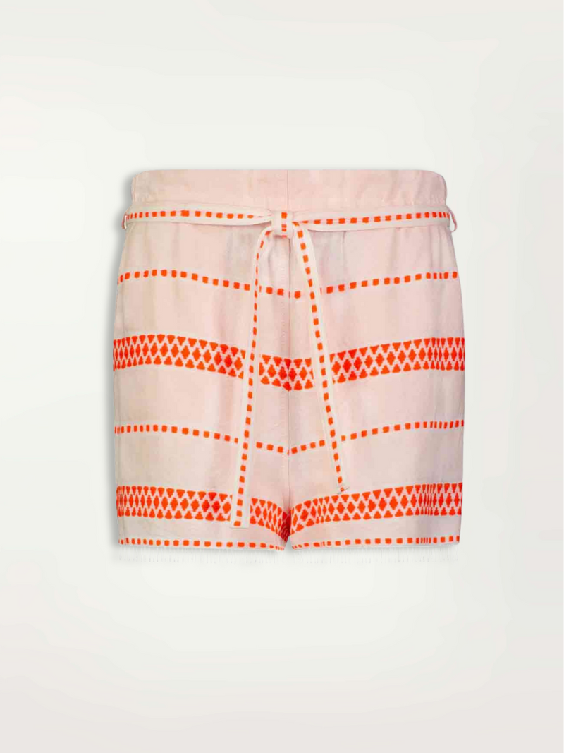 Those belted shorts feature an elastic waistband, front tie belt and fringes.