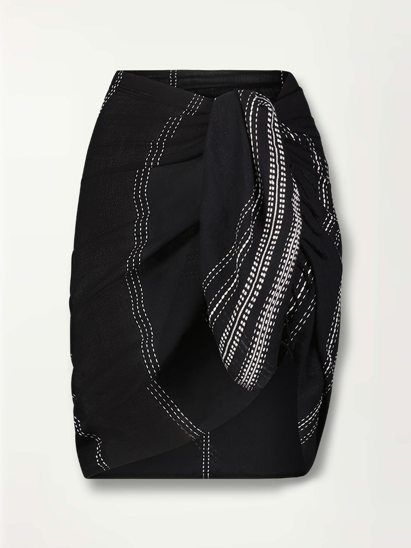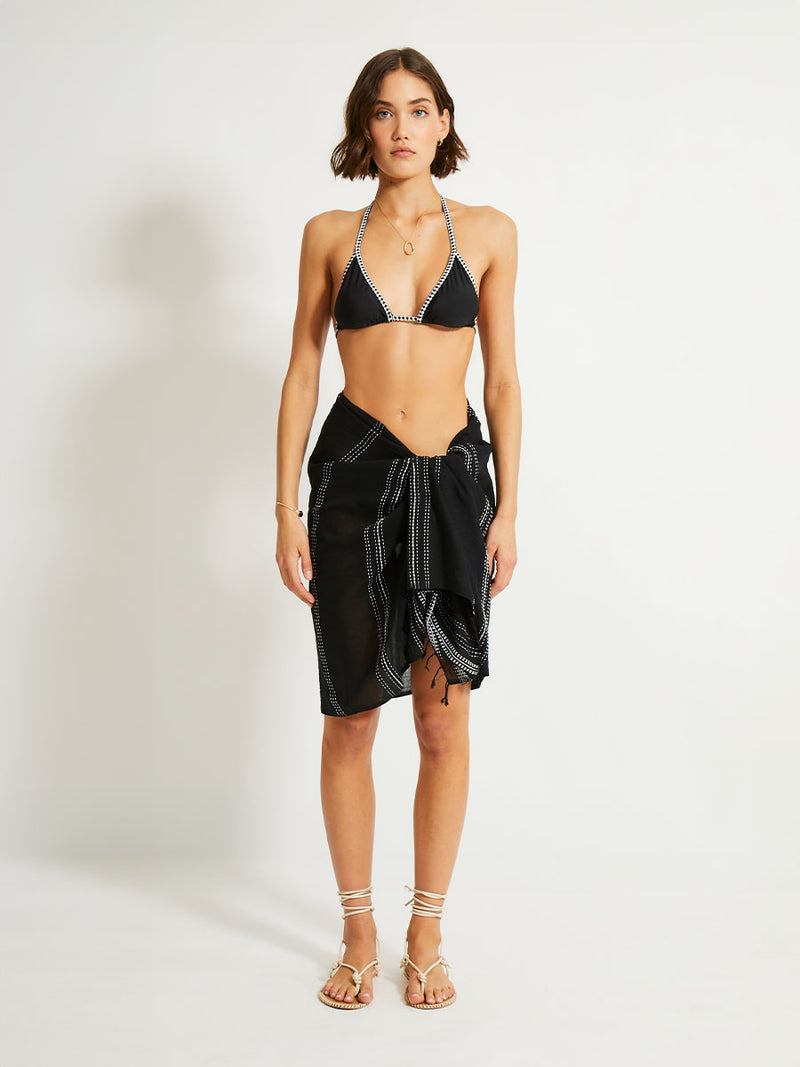 This sarong is designed to be worn a number of ways: as a scarf around the neck; a cover-up around tie around the chest; a pareo tied around the waist or laid flat as a beach blanket, this versatile style is a beach wear essential.