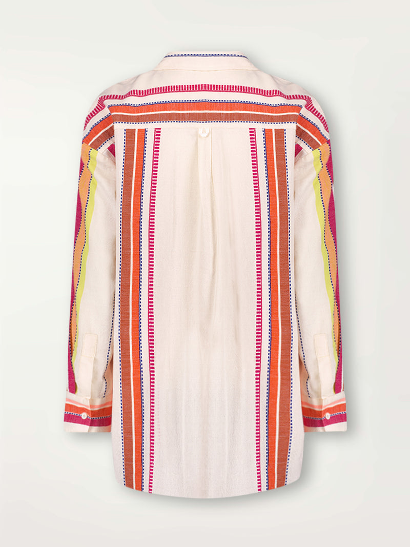 The Tizita Fiesta Collection features lemlem tibeb inspired stripes in a vibrant fiesta of colors against a creamy vanilla background.