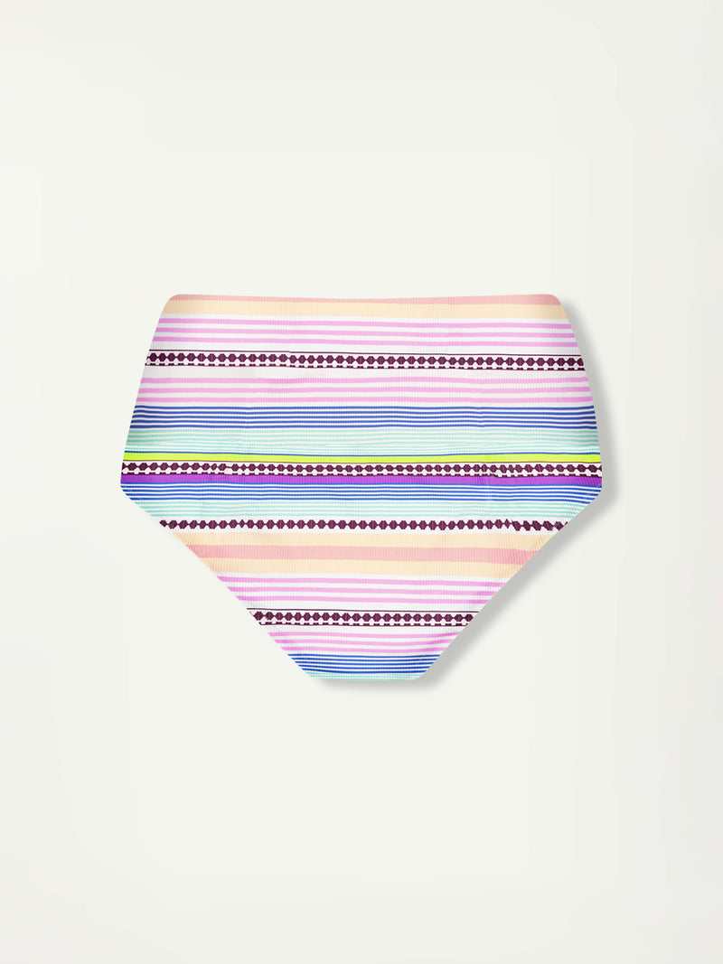 The fully lined high waist bikini bottom offers a flattering and moderate coverage with its low-cut leg opening. The bow tie in the back adds a touch a elegance to the silhouette.