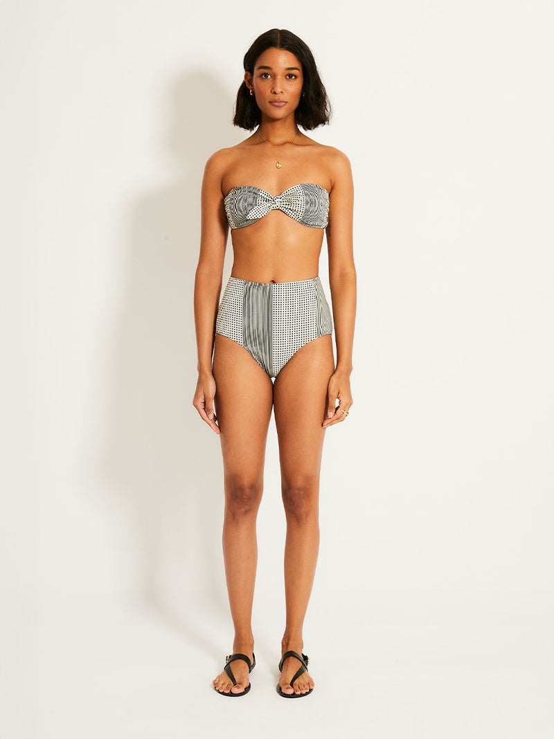 The Semira Swim Collection draws inspiration from our archive signature handwoven Semira pattern, beautifully reimagined in soft jacquard swim fabric. Classic black and ivory hues create a striking contrast on matte jersey knitted jacquard.