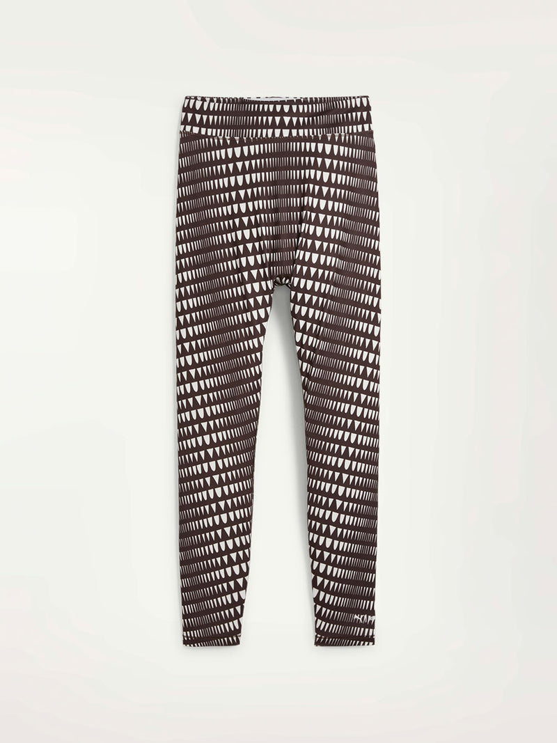 These leggings feature lemlem's signature hand-drawn triangle patterns on a dark chocolate ribbed fabric made with innovative PUMA materials such as moisture-wicking dryCELL and luxuriously soft CLOUDSPUN technologies. With a discreet center back pocket at the waistband to keep belongings secured during workouts, these leggings are perfect for yoga, pilates, walking, and loungewear, offering an easy, lightweight feeling and support.