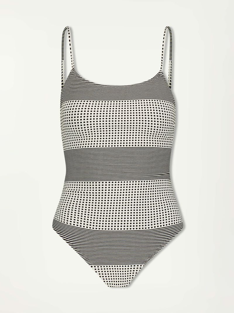 The Semira Swim Collection draws inspiration from our archive signature handwoven Semira pattern, beautifully reimagined in soft jacquard swim fabric. Classic black and ivory hues create a striking contrast on matte jersey knitted jacquard.