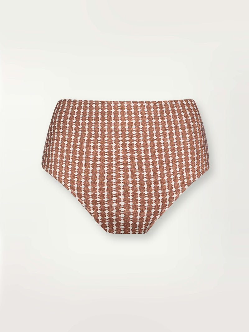 Le bas de bikini taille haute entièrement doublé offre une couverture flatteuse et modérée avec son ouverture de jambe basse. Le nœud papillon dans le dos ajoute une touche d'élégance à la silhouette.