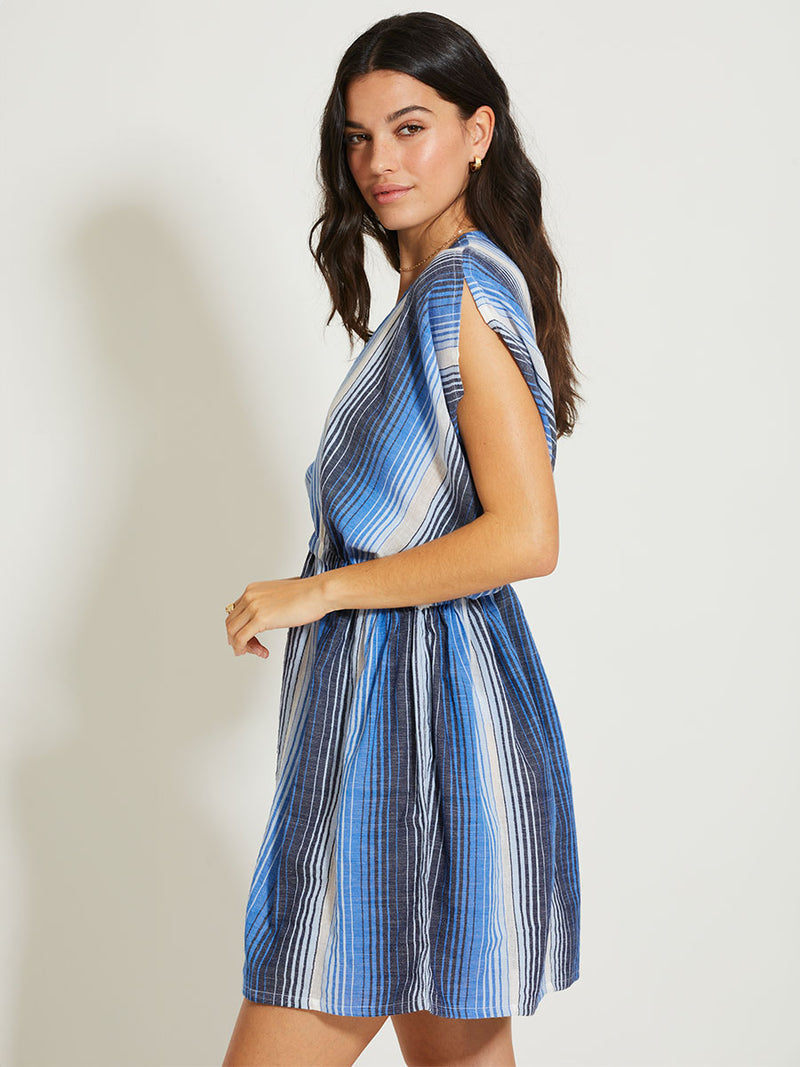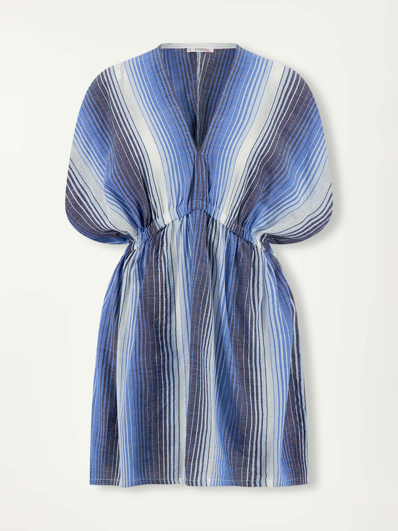 The Feven Blue collection features carefully placed stripes that blend into a stunning ombré effect, with soft transitions between white, sky blue, mid blue, and deep navy.
